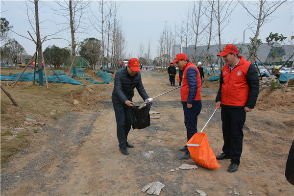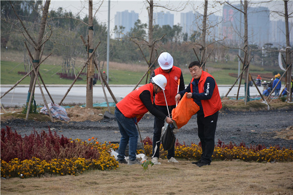 上午十时三十分,志愿服务活动开始后,华体会体育(中国)HTH·官方网站党委委员、副总经理、项目部总经理汪洋亲自带头参加活动,其他党员干部带头干,职工群众积极干,参建单位负责人志愿加入干,大家拿起工具、弯下腰去,捡起草地上的生活垃圾,集中放进现场放置的垃圾桶内;没有拿到工具的同志们也拿起简易垃圾袋,将捡到的生活垃圾放进垃圾袋盛满后再放进垃圾桶内。一时间,党徽熠熠、爱心闪闪、干劲满满,不到一个小时时间,约20人的志愿服务队伍完成了近20000平米区域的垃圾清理任务,景观施工现场面貌大为改观。